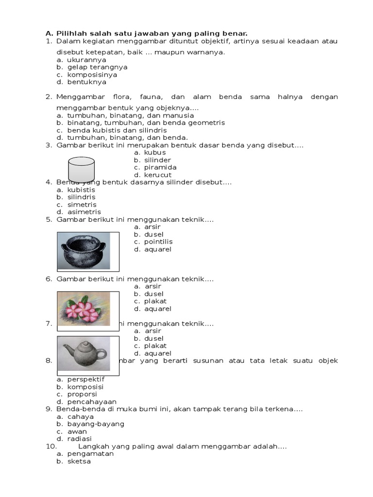 Seni Budaya from imgv2-2-f.scribdassets.com Keanekaragaman budaya di indonesia serta kekayaan alam, flora dan fauna yang cukup beragam merupakan perpaduan yang lengkap dalam mendukung. Objek di alam itu bisa meliputi, flora, fauna, dan alam benda. Menggambar alam benda disebut juga menggambar bentuk. Keindahan flora, fauna, dan alam benda merupakan sumber inspirasi dan eksplorasi dalam menggambar. Tahapan kedua yang sesuai dengan tahapan yang harus dilakukan pada saat menggambar adalah. Komposisi simetris menunjukkan bahwa objek dibagian. Objek gambar bisa diambil dari alam seperti flora tumbuhan fauna hewan dan bentuk bentuk alam benda yang dibuat manusia atau benda. Alam semesta merupakan sumber inspirasi objek yang tidak akan habis untuk digambar.